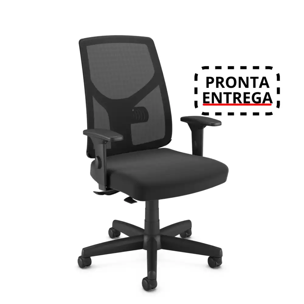 Cadeira Giratória Executiva YON, 47101 SRY, Encosto em TELA NEWNET c/ Regulagem de Altura, Aranha com POLAINA PRETA, Rodizio. 50 Nylon, Braço SL New PP Preto - Com Apoio Lombar